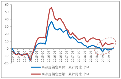 2014-2019.6商品房銷售面積及銷售金額累計同比