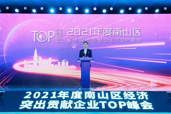2022年4月8日下午,深圳市南山區2021年度經濟突出貢獻企業TOP峰會在南山區檔案服務大廈三樓多功能廳舉行。