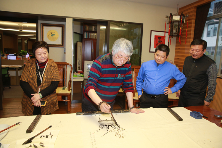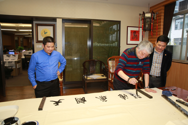 12 月25 日下午,中國(guó)書法家協(xié)會(huì)會(huì)員、廣州市美協(xié)主席、西泠印社理事、著名美術(shù)家、書法家周國(guó)城先生和中國(guó)書法家 協(xié)會(huì)會(huì)員、西泠印社社員、東莞市旗峰山藝術(shù)博物館館長(zhǎng)王躍慶先生訪問了寶鷹集團(tuán),寶鷹集團(tuán)董事局主席古少明先生、監(jiān)事會(huì)主席胡蘭萍女士、副總裁古樸先生親切接待了周國(guó)城主席和王躍慶館長(zhǎng)。