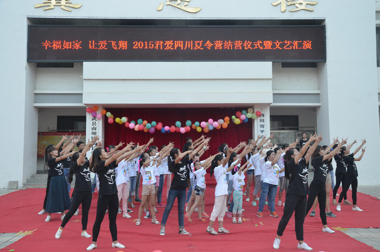 在結營儀式的文藝匯演上,孩子們和志愿者一起,或高歌愛的奉獻,或翩翩起舞,或表演孩子們精心準備的其他節目,莫不相扶相幫,氣氛融融,現場充滿溫馨的愛意。