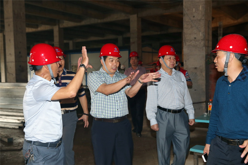 隨后,在寶鷹集團項目部工作人員的陪同下,雙方來到施工現場,就工程建設的進度問題仔細核對。在由寶鷹集團負責施工的裙樓展示區幕墻工程施工現場,古少波董事長及寶鷹集團眾高管就施工工藝、所用材料、項目施工難點等情況向項目部同事一一仔細詢問,并現場檢查安全施工事項,叮囑現場施工人員嚴把安全生產關。